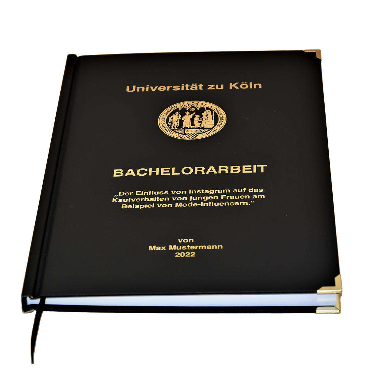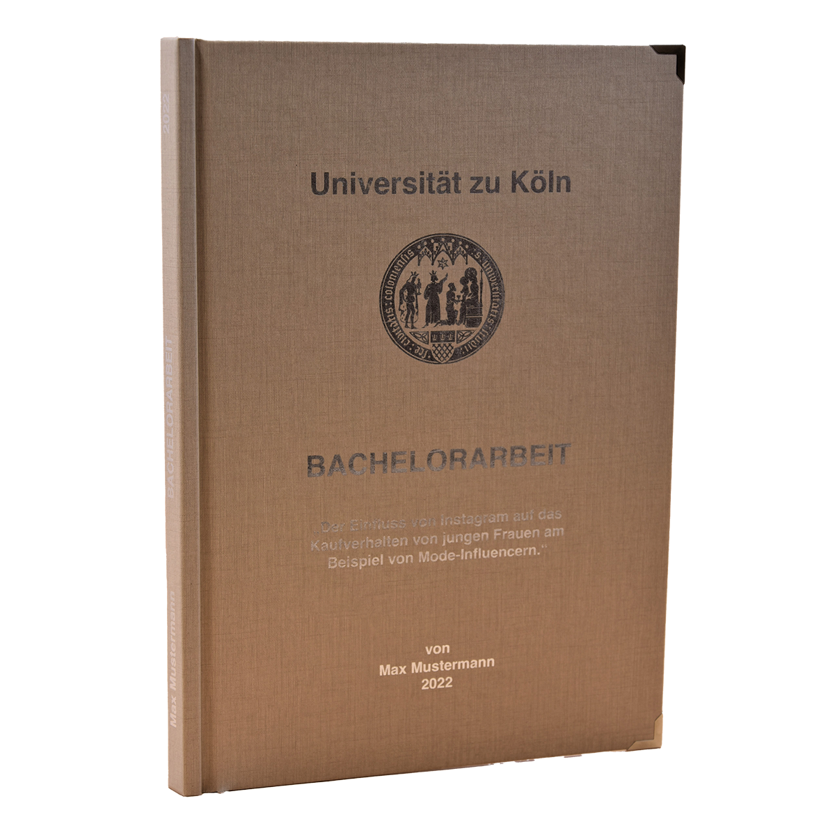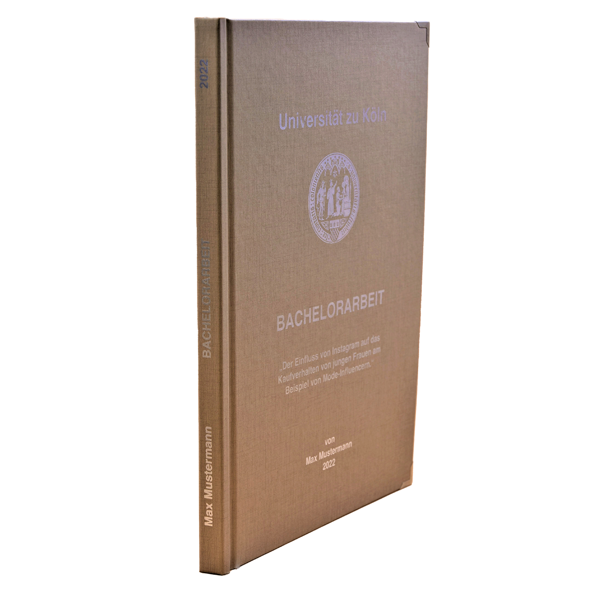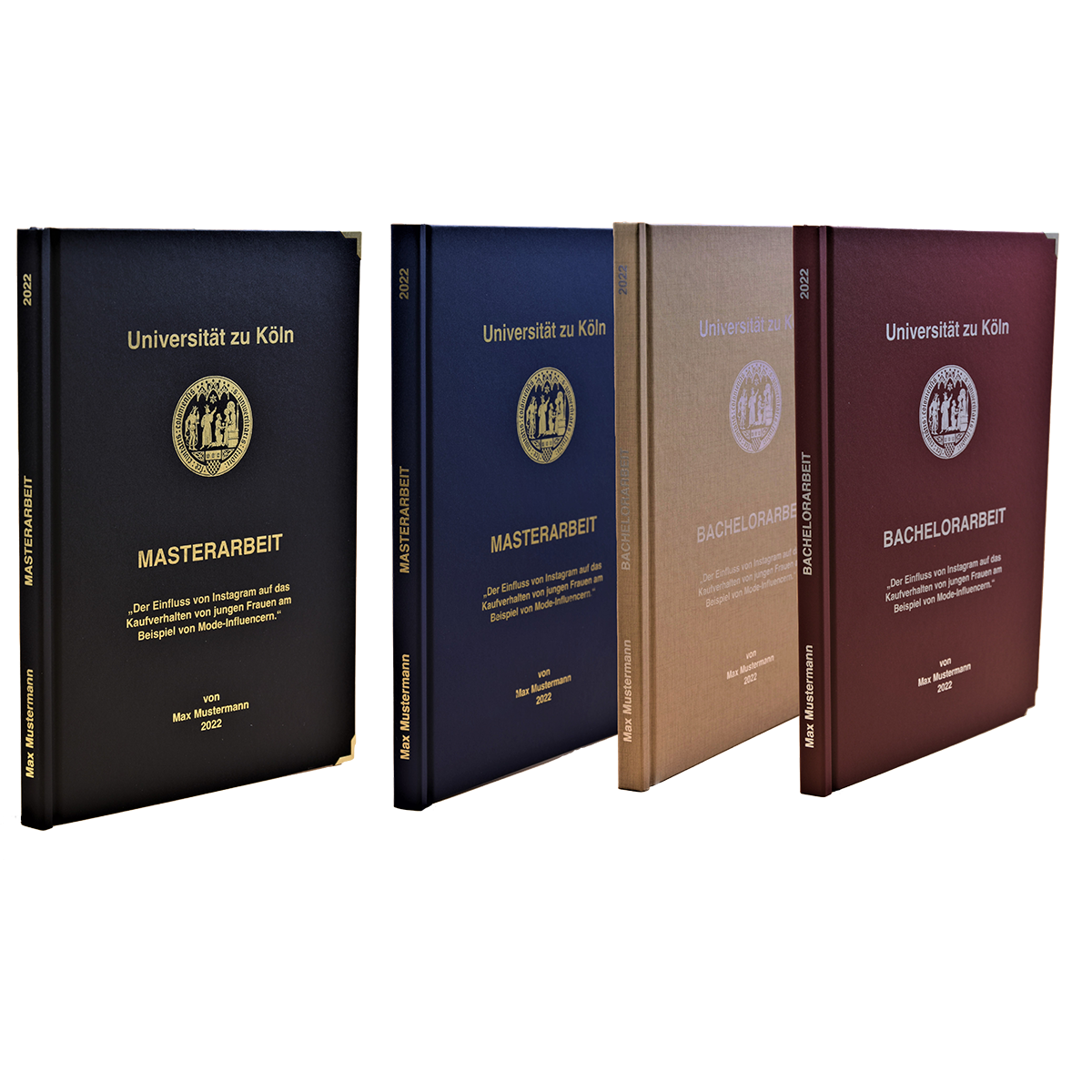 Deine Bachelorarbeit ist fertig geschrieben und Korrekturgelesen, jetzt ist es an der Zeit deine Bachelorarbeit drucken und binden zu lassen. Du hast die Möglichkeit aus deiner Bachelorarbeit eine edle Bindung als Hardcover-Buch zu erstellen. Du hast verschiedene Farben zur Auswahl egal ob bei der Folien-Prägung für das Cover oder bei den Buchecken und dem Leseband, wir lassen keine Wünsche offen. Als Spezialisten für das drucken und binden von Bachelorarbeiten sind wir bereit dir den restlichen Teil abzunehmen. Du musst nur durch den einfachen Online-Konfigurator deine Bestellung abgeben, alles andere übernehmen wir für dich, da du hier einen richtig guten Eindruck bei den Prüfern hinterlassen kannst. Durch eine edle Prägung in gold, silber, bronze und kupfer auf das Cover hast du genügend freie Auswahl. Im Bestellprozess kannst du das Logo deiner Universität auswählen, alternative kannst du die Druckvorlage selbst erstellen und hochladen, hierzu kannst du auch Druckvorlagen von unserer Seite downloaden, die du dann frei bearbeiten kannst. Zusätzlich hast du die Möglichkeit dein Hardcover mit Buchecken und einer Leseband in verschiedenen Farben zu versehen. Nach deiner Bestellung, brauchst du dir keine Sorgen mehr zu machen, ab hier übernimmt unser Team alles weitere. Unser Team ist spezialisiert für das drucken und binden von Abschlussarbeiten. Es werden zwischen allen Schritten Qualitätskontrollen durchgeführt, so dass alles sorgfältig abläuft. Bei Fragen bzw. Hilfestellung, kannst unser Team jeder Zeit telefonisch oder per Email kontaktieren.