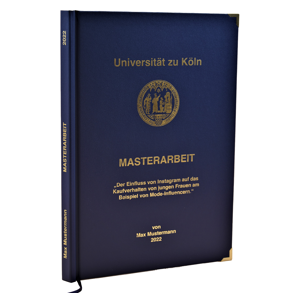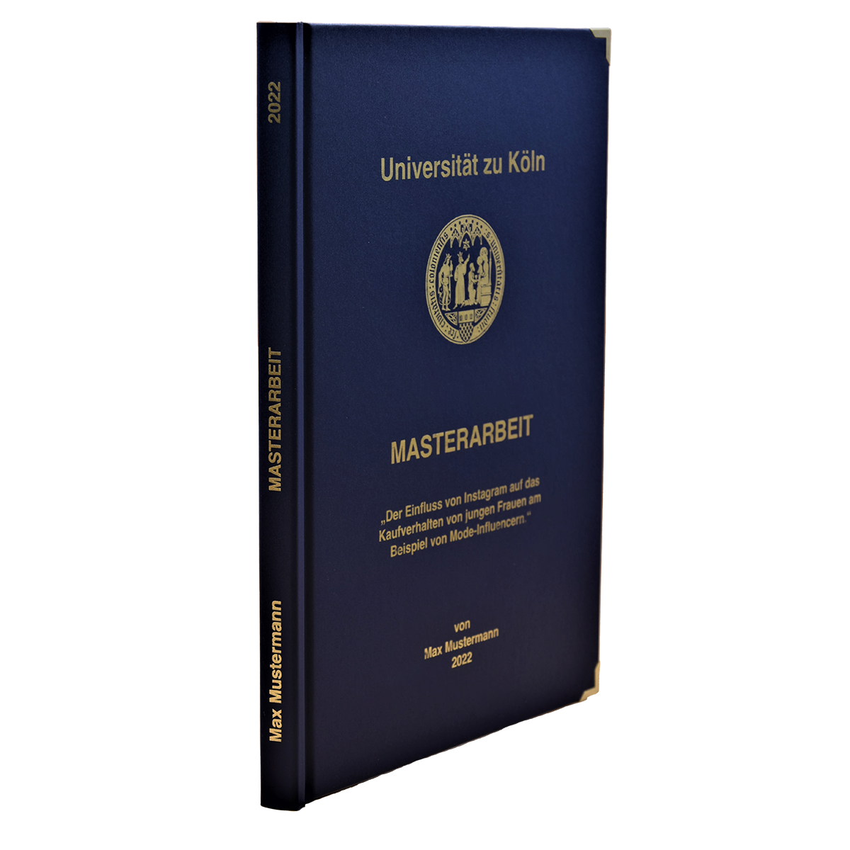Unsere Premium Hardcover Variante ist ideal für deine Abschlussarbeit. Ob deine Bachelorarbeit, Masterarbeit oder Dissertation bzw. Doktorarbeit selbst für deine Hausarbeit oder Facharbeit, kannst du hier einen richtig guten Eindruck bei den Prüfern hinterlassen. Durch eine edle Prägung in gold, silber, bronze, kupfer, schwarz, weiß, rot und blau auf das Cover hast du genügend freie Auswahl. Im Bestellprozess kannst du das Logo deiner Universität auswählen, alternative kannst du die Druckvorlage selbst erstellen und hochladen, hierzu kannst du auch Druckvorlagen von unserer Seite downloaden, die du dann frei bearbeiten kannst. Zusätzlich hast du die Möglichkeit dein Hardcover mit Buchecken und einer Leseband in verschiedenen Farben zu versehen. Nach deiner Bestellung, brauchst du dir keine Sorgen mehr zu machen, ab hier übernimmt unser Team alles weitere. Unser Team ist spezialisiert für das drucken und binden von Abschlussarbeiten. Es werden zwischen allen Schritten Qualitätskontrollen durchgeführt, so dass alles sorgfältig abläuft. Bei Fragen bzw. Hilfestellung, kannst unser Team jeder Zeit telefonisch oder per Email kontaktieren.